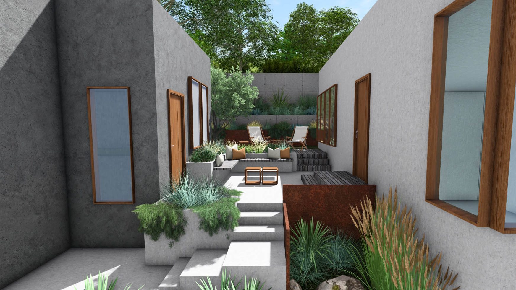 Minimal? Try having a more open spaced landscape with a few groups of plants in between. Have different species within one group of three, and keep those same three species throughout the whole site. Trust me, only having a few plants on your site will make you, as a minimalist, super happy. It creates unity, simplicity, and a consistent color palette. Also consider choosing plants with a neutral toned color and choosing more shrubs over perennials. This will provide texture and complexity without business. Research desert landscape design for inspo.