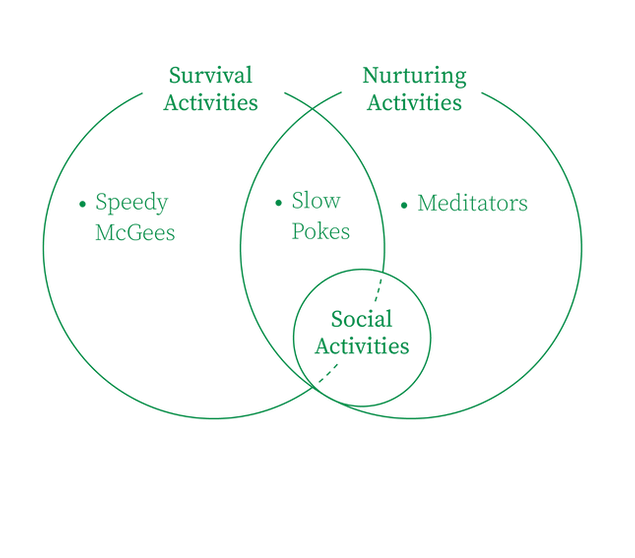 Slow Pokes: Folks who are also wanting to get from A to B, but not as quickly. They tend to wander and take intermittent walks. They find the curiosity of interstitial spaces inspiring.