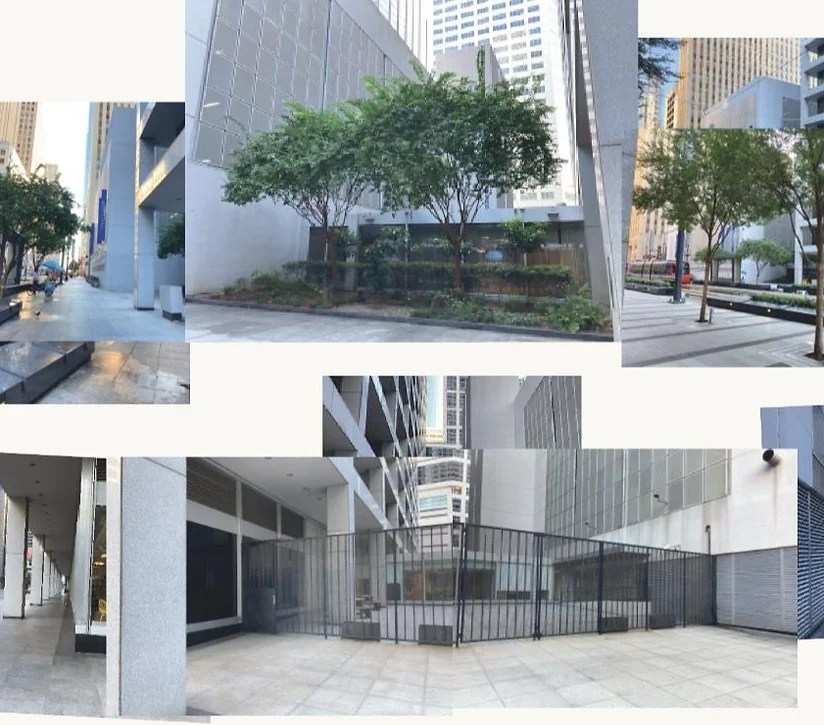 Joiner collages of the chosen site for the exploration in Houston. Top collage is on Main St. (west) and bottom collage is on Fannin St (east).