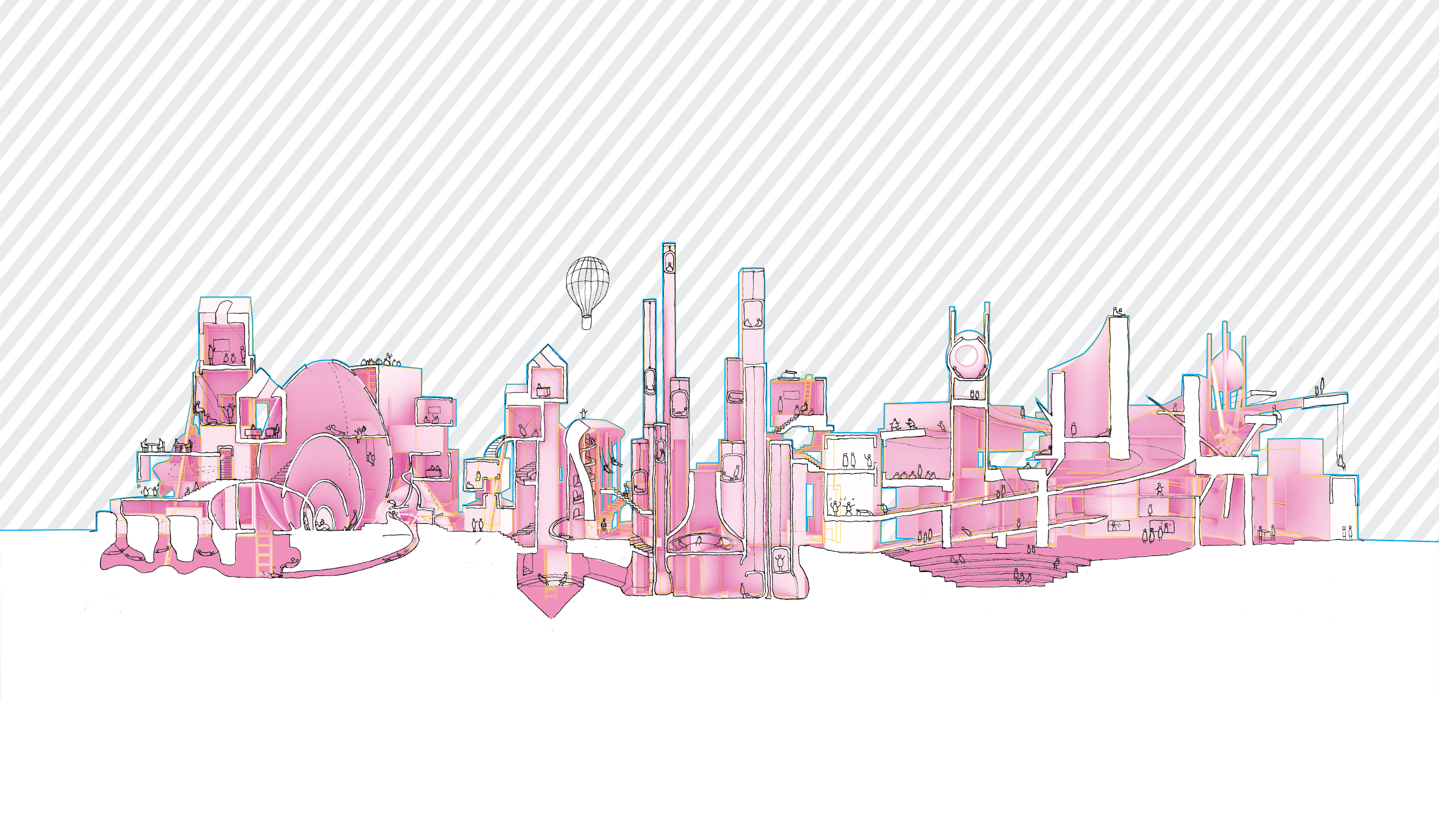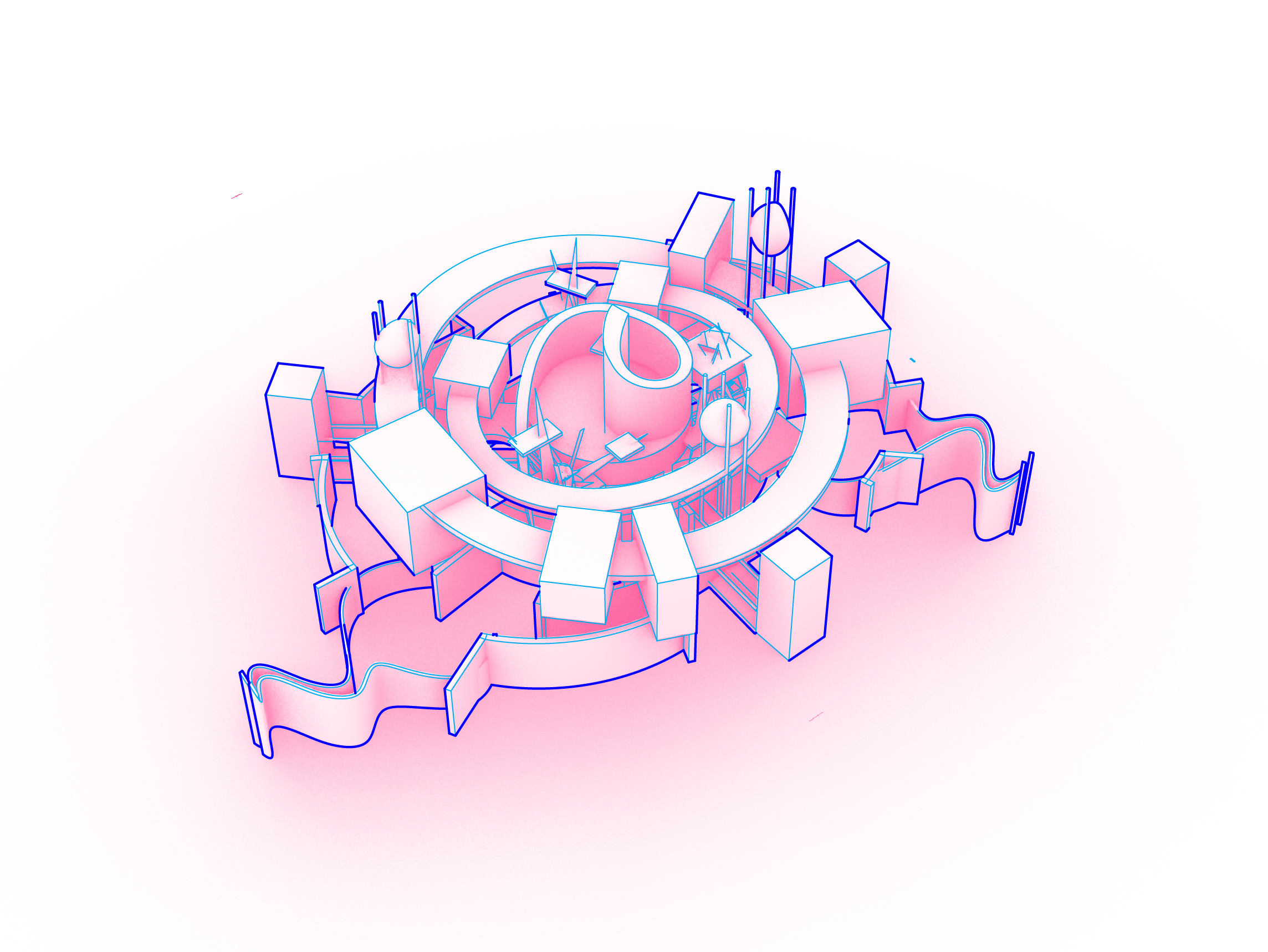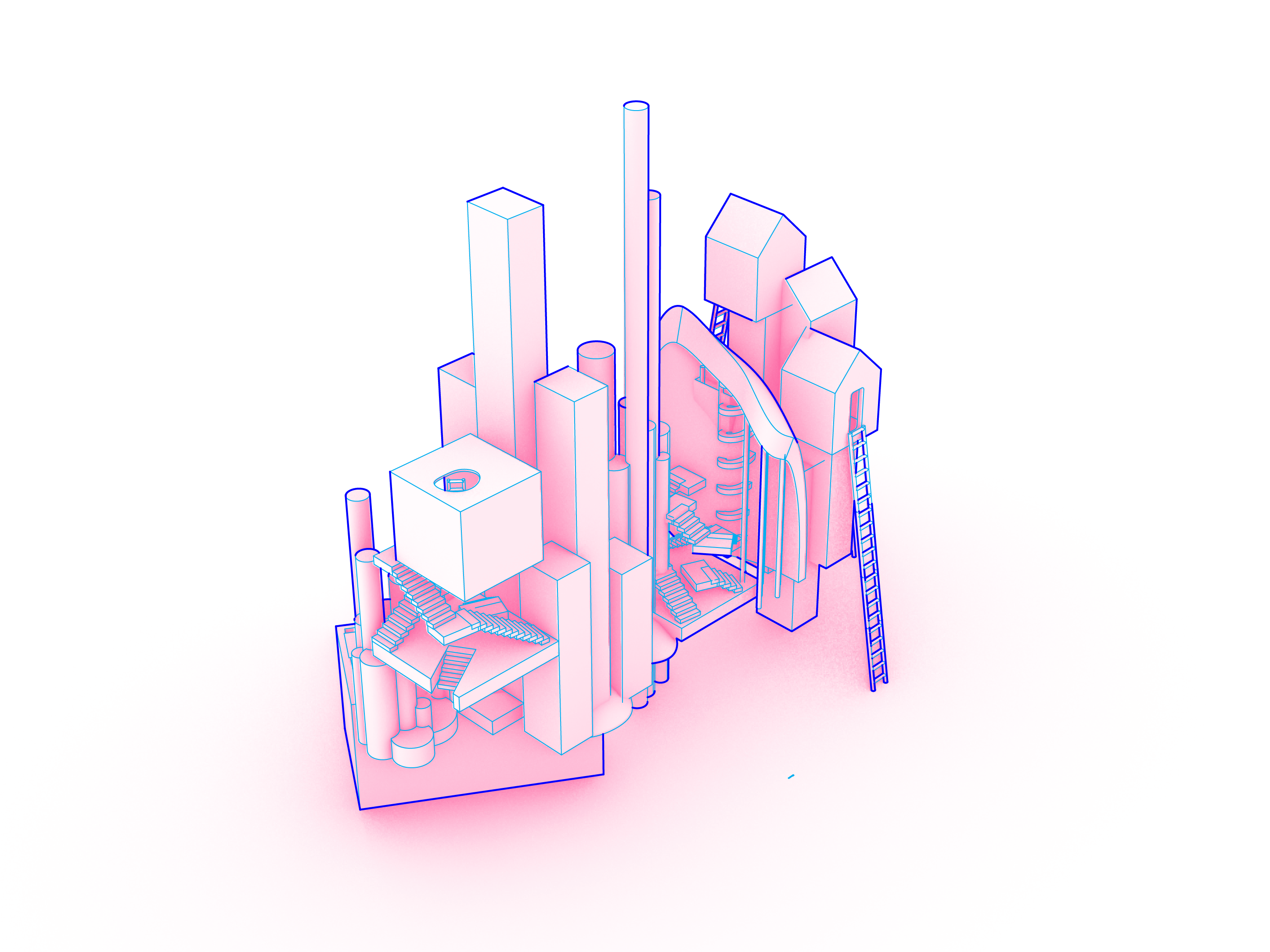 An exploration of combining the forms previously deduced in the formal intuitions exercise within interstitial spaces between rectilinear city blocks.