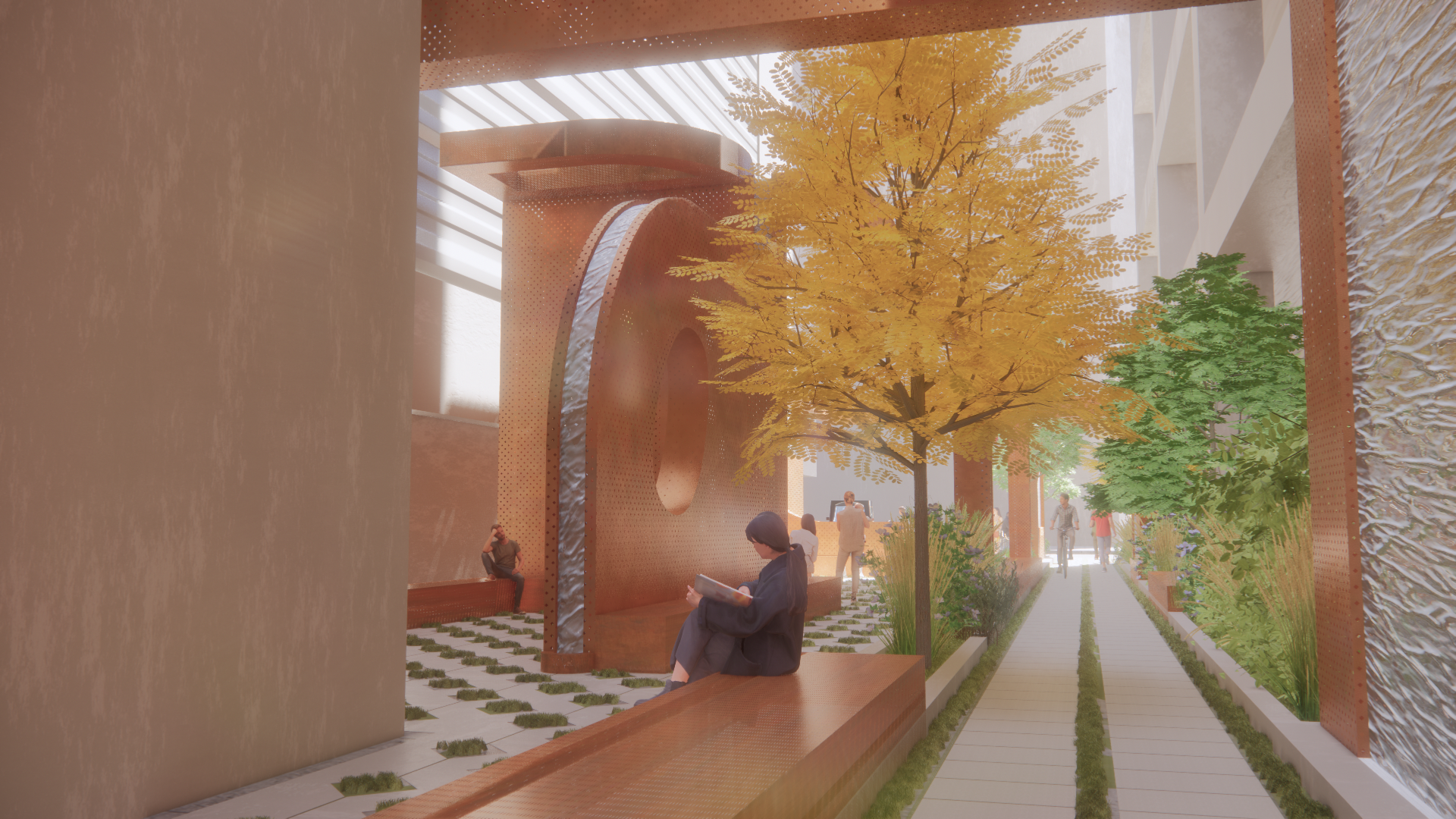 What would a public space look like that allowed the average working human to find awe in their daily life again? How can we use architecture to remind ourselves that slowing down, connecting, and finding joy everyday is not a luxury for those who can afford it but is entitled to every single human, no matter how “busy” we are? The average working human cannot access or control the developments of private spaces within cities, but what about the space in between the private spaces? What about the forgotten cracks of the city? These can be transformed from ignored interstitial areas into celebratory reminders of this innate need for connection to the unknown. These lost spaces can become our gaskets of awe.