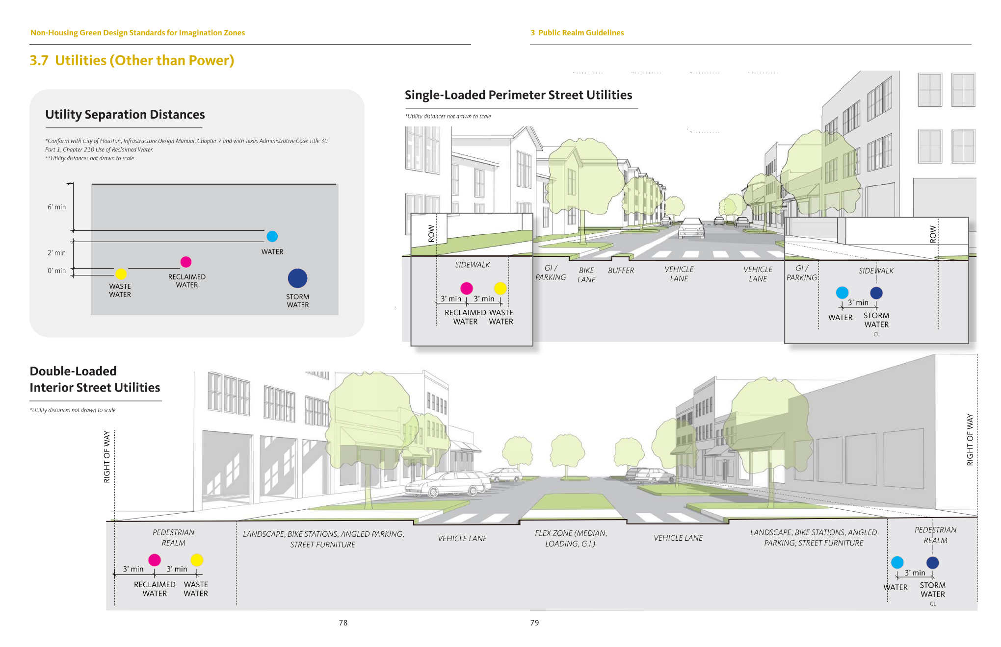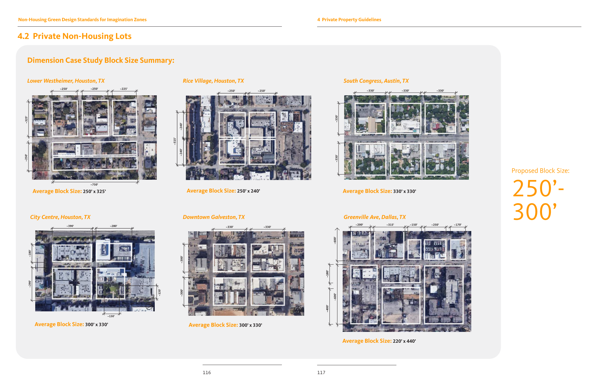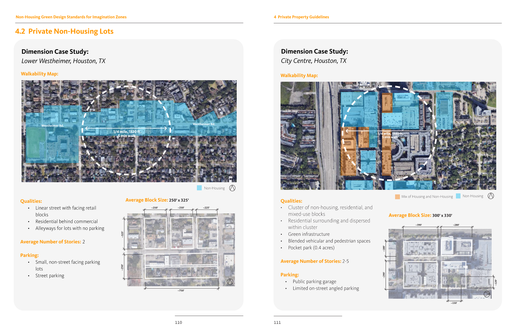 The current Houston municipal code has little regulation or mandatory green standards for new non-housing developments. As a result, Houston’s urban fabric has woven in very few long-term resiliency strategies or pedestrian-oriented designs.